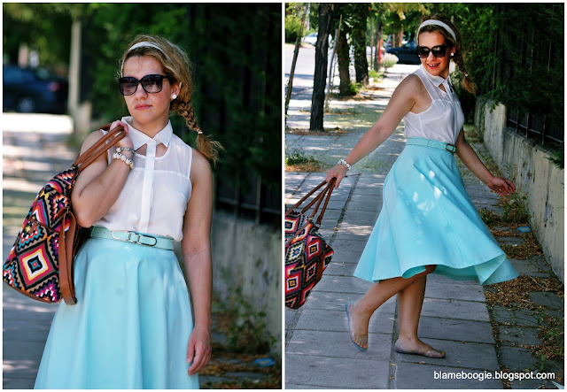 shirt - the fashion frog, skirt - DIY, belt - vintage, bag - Primark, earrings - kitchen 29, bracelets - DIY, hairband - H&M, sunglasses - Marc by Marc Jacobs, shoes - random